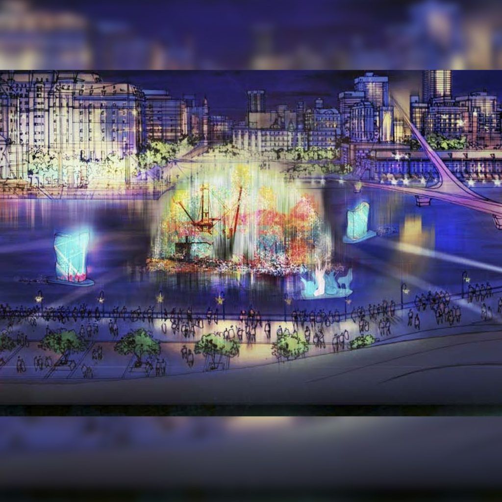 ProyectoPara la Corporación Puerto Madero y el grupo inversor del Hilton, se desarrolló este proyecto de espectáculo al aire libre que podía repetirse variando la temática a lo largo del año, a fin de generar mayor tráfico turístico nocturno en la zona.
